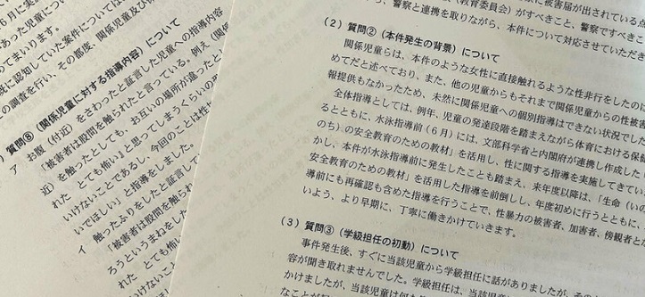 さらに7月の夏休み前に女児が1人で呼ばれ、複数の教員が加害男児の「反省の言葉」を代読するのを聞かされた。